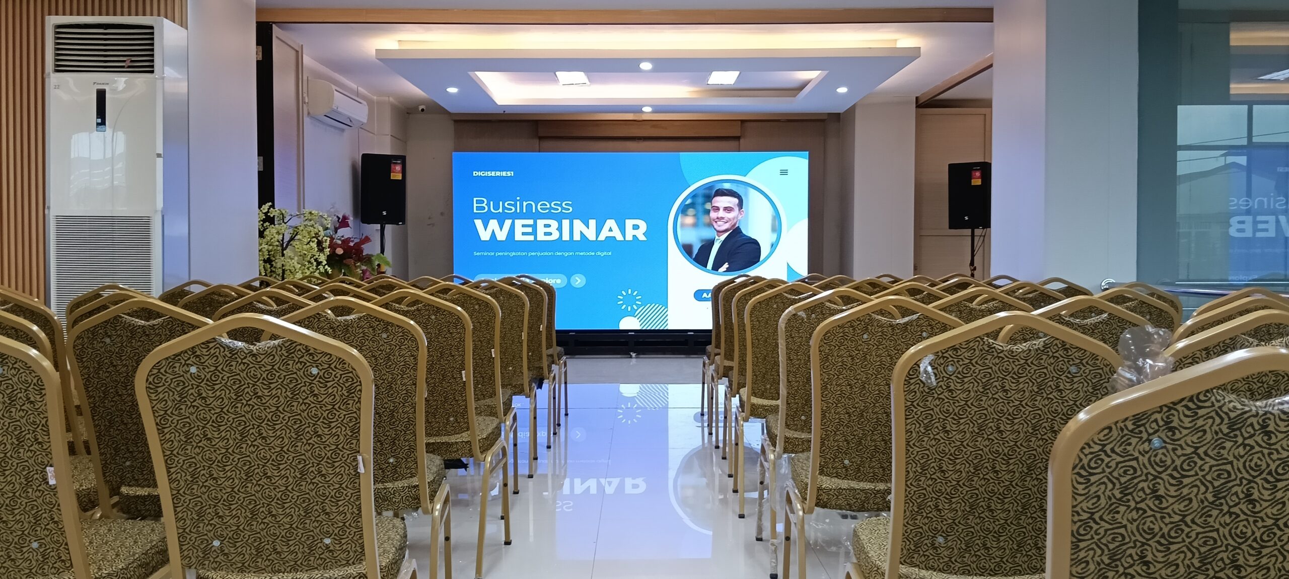 Bisa dipakai acara webinar dimana di lengkapi peralatan zoom dan peralatan media profesional , membuat acara gatering atau meting bisa offline dan di ikuti peserta online dari tempat lain recara langsung serta bisa live streaming sekalian